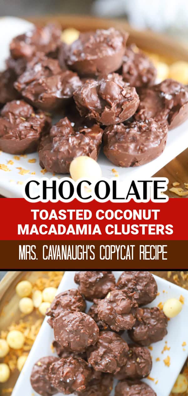These toasted coconut macadamia nut clusters have the perfect mix of chocolate, crunch, and coconut goodness. You can make this Mrs. Cavanaugh’s copycat macadamia candy recipe at home for a quick and satisfying chocolate treat. They’re simple, rich, and so good it’s hard to stop at one !