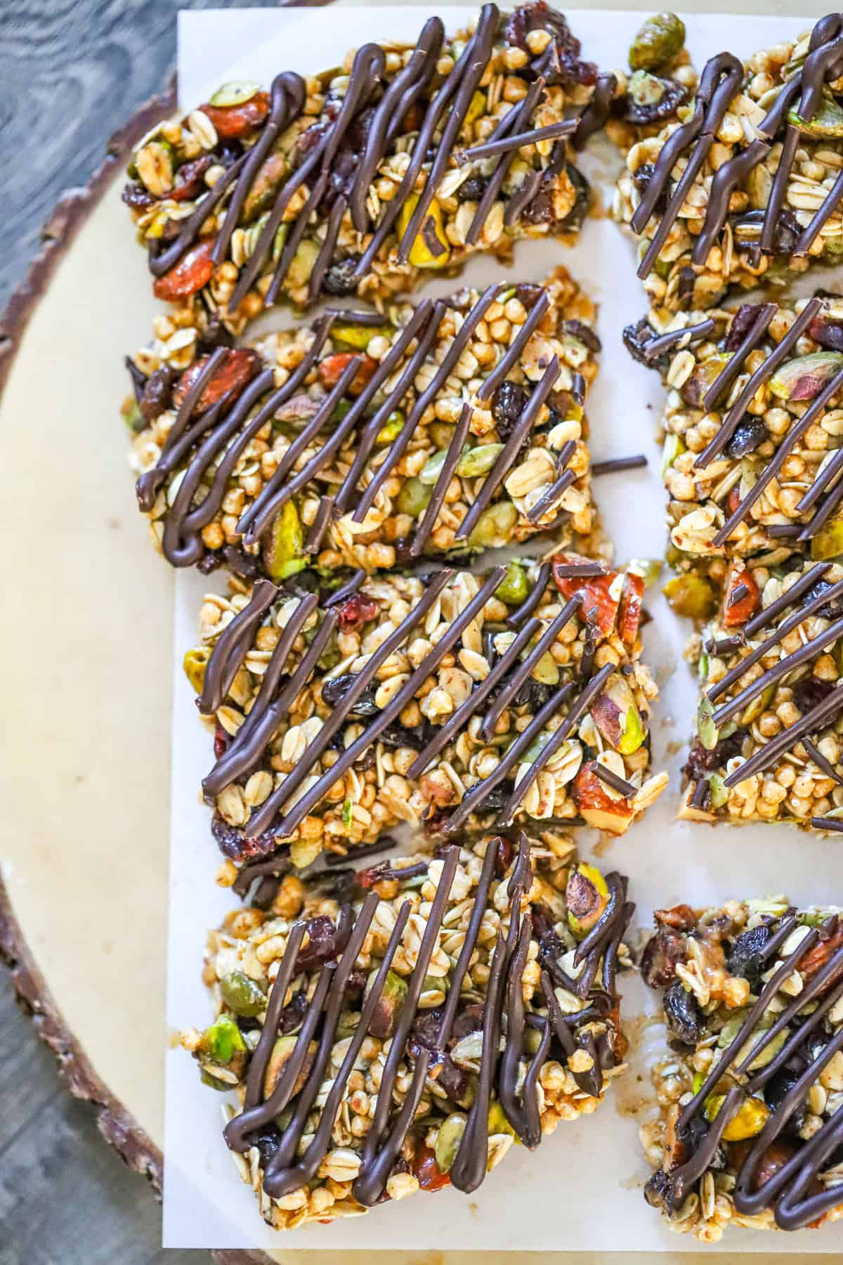 Melt the chocolate chips and drizzle or spread the melted chocolate over the bars. This adds a little extra sweetness and a nice finish. -