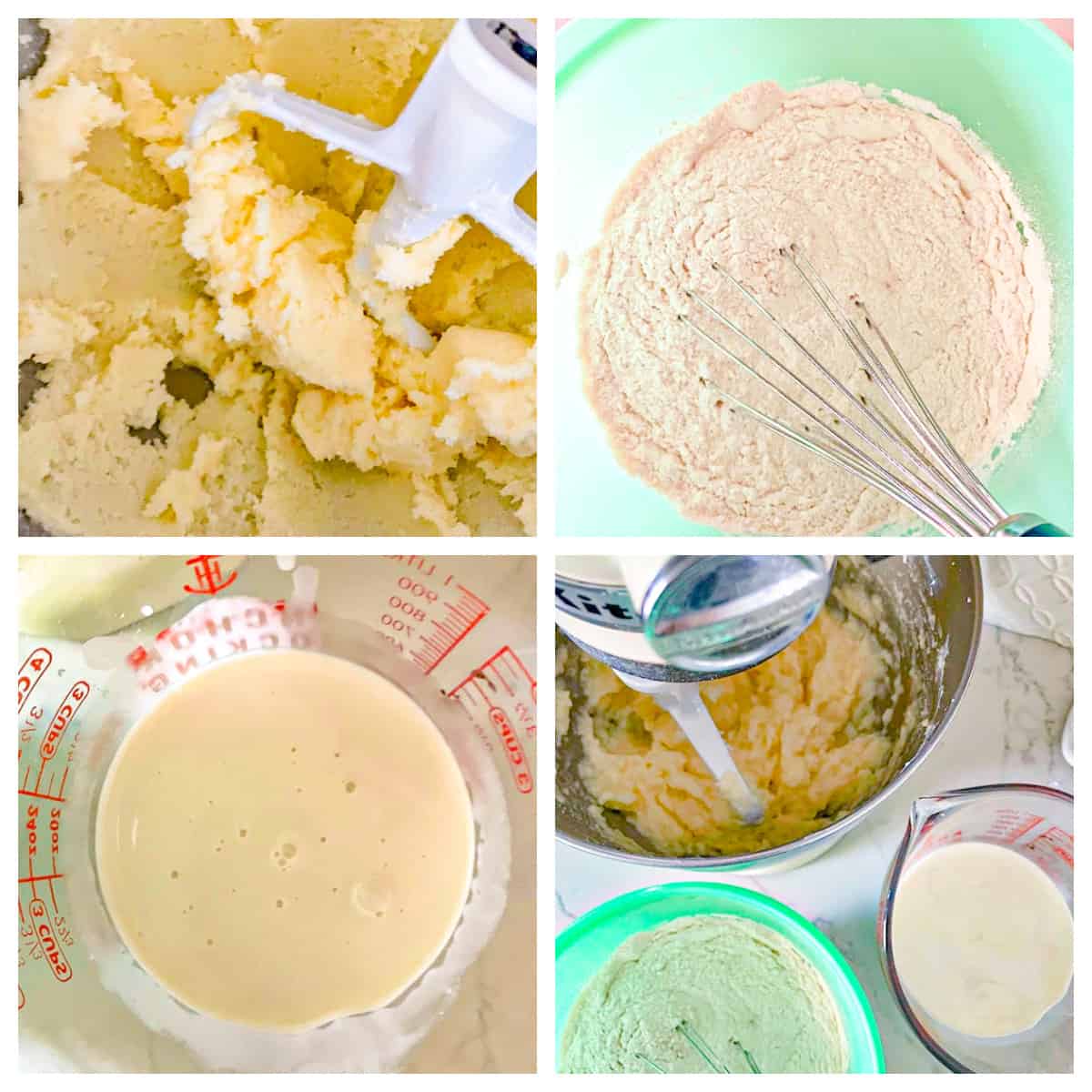 - Reduce mixer speed to medium and add the flour mixture in thirds alternating with the buttermilk, mixing to incorporate with each addition and beat until just combined and smooth.