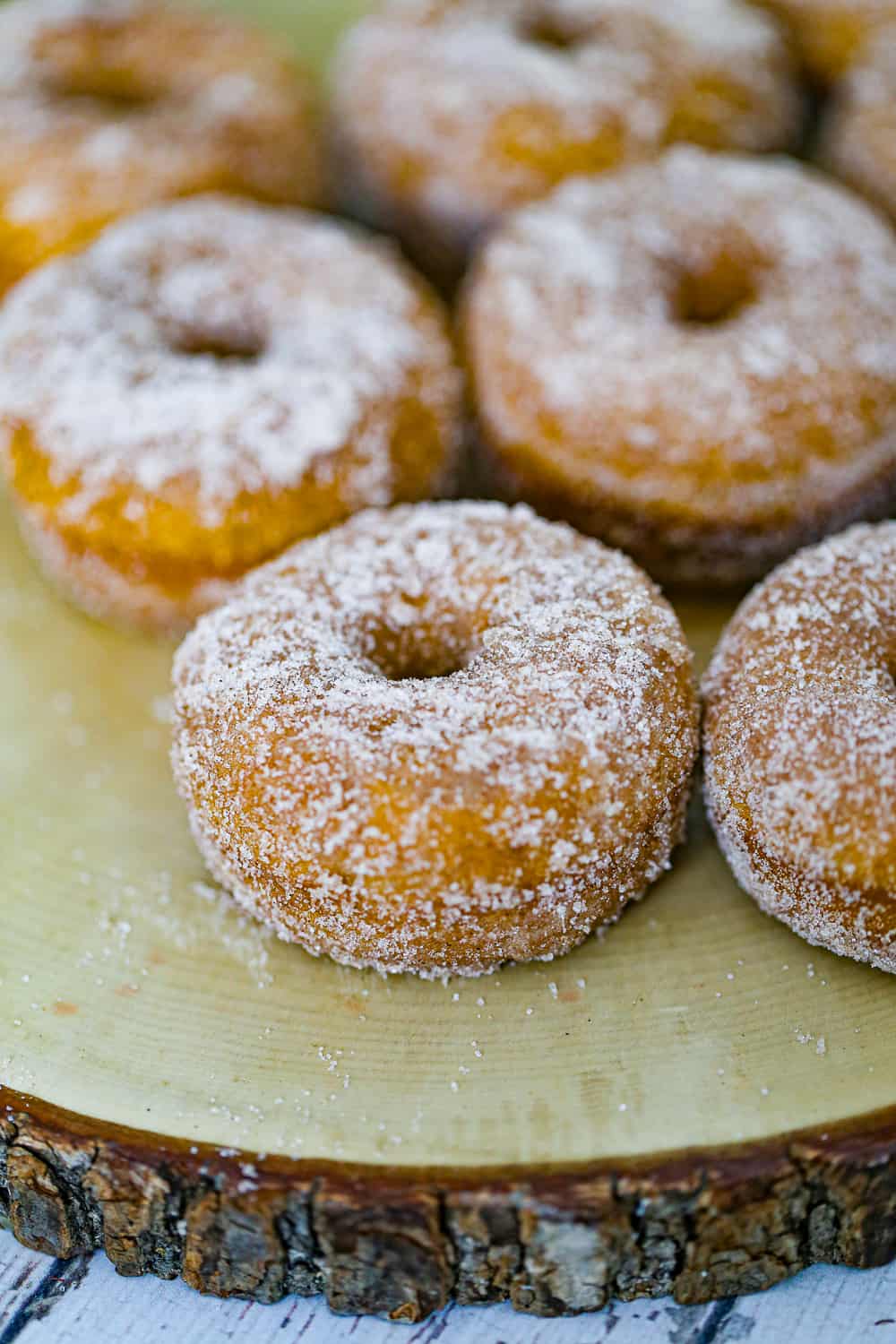 - Sugared toppings are best added while the donuts are still hot from the oven. The hot steam from the donuts is released and helps the sugar stick to the outsides of the donuts. I like to double dip them. However, if you are brushing them with melted butter, then rolling them in sugar and cinnamon, like I did, the donuts do not have to be hot out of the oven. The cinnamon sugar will stick to the melted butter just fine.