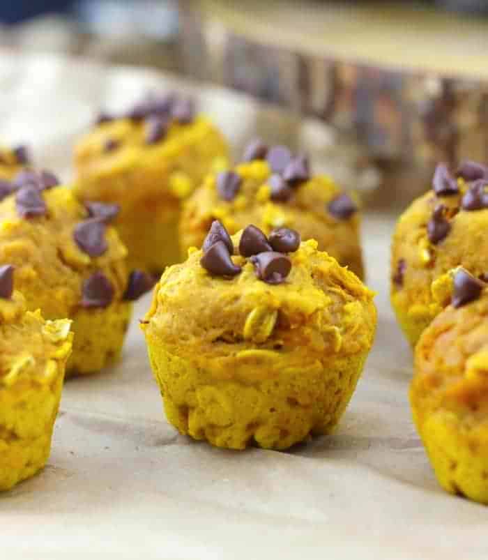 Healthy Mini Pumpkin Oat Chocolate Chip Muffins