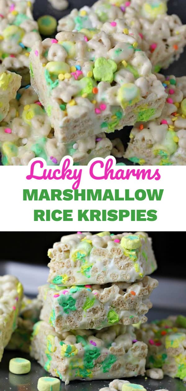 These ‘Magically Delicious’ Lucky Charms Rice Krispies are loaded with gooey marshmallow and mini marshmallows from the Lucky Charms. So you get double the marshmallow in these Lucky Charm treats!