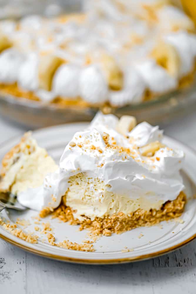 Got a hankering for bananas? If so, you’ll want to get some to make this Easy No-Bake Banana Cream Pie recipe! You’ll love this lush, creamy, light banana fluff pudding with banana slices and a thick whipped cream layer all inside a scrumptious nilla wafer crust or graham cracker crust!