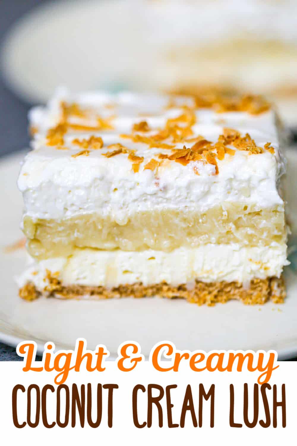 From the first rich layer of graham cracker crust, to the fluffy cream cheese filling, to the coconut cream pudding to the sweet and creamy topping of whipped cream with toasted coconut, this layered dessert is sure to satisfy any sweet tooth.