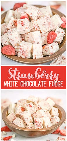 This super easy Strawberry White Chocolate Fudge is a rich, delicious white chocolate fudge packed with amazing strawberry and white chocolate flavor that is sure to get the taste buds singing happily!